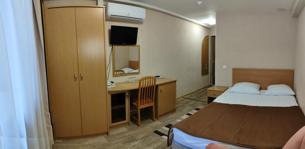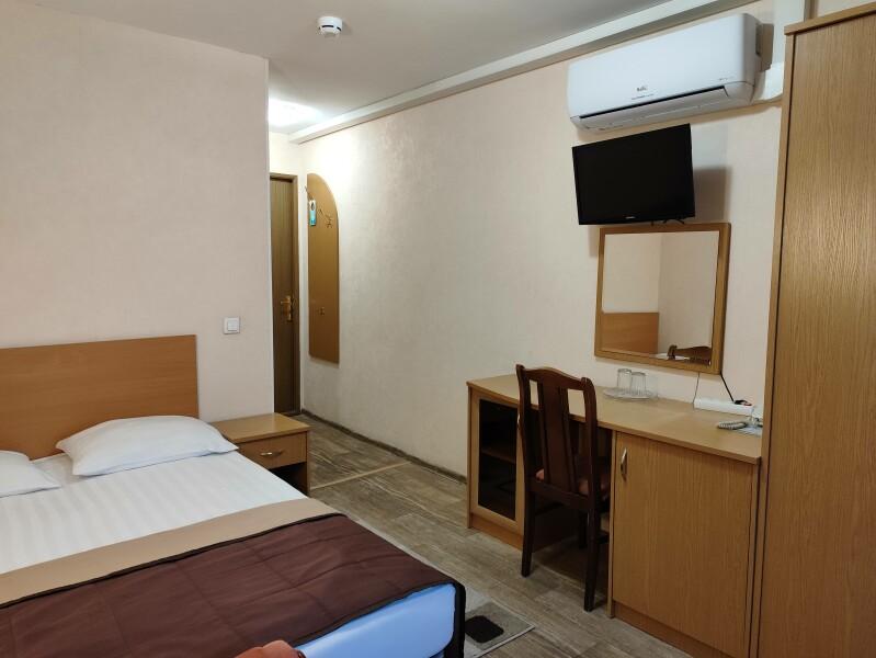 Номер с полутораспальной кроватью и ванной комнатой. В номере есть все необходимое как для отдыха, так и для работы. Стоимость от 3700 до 6000
